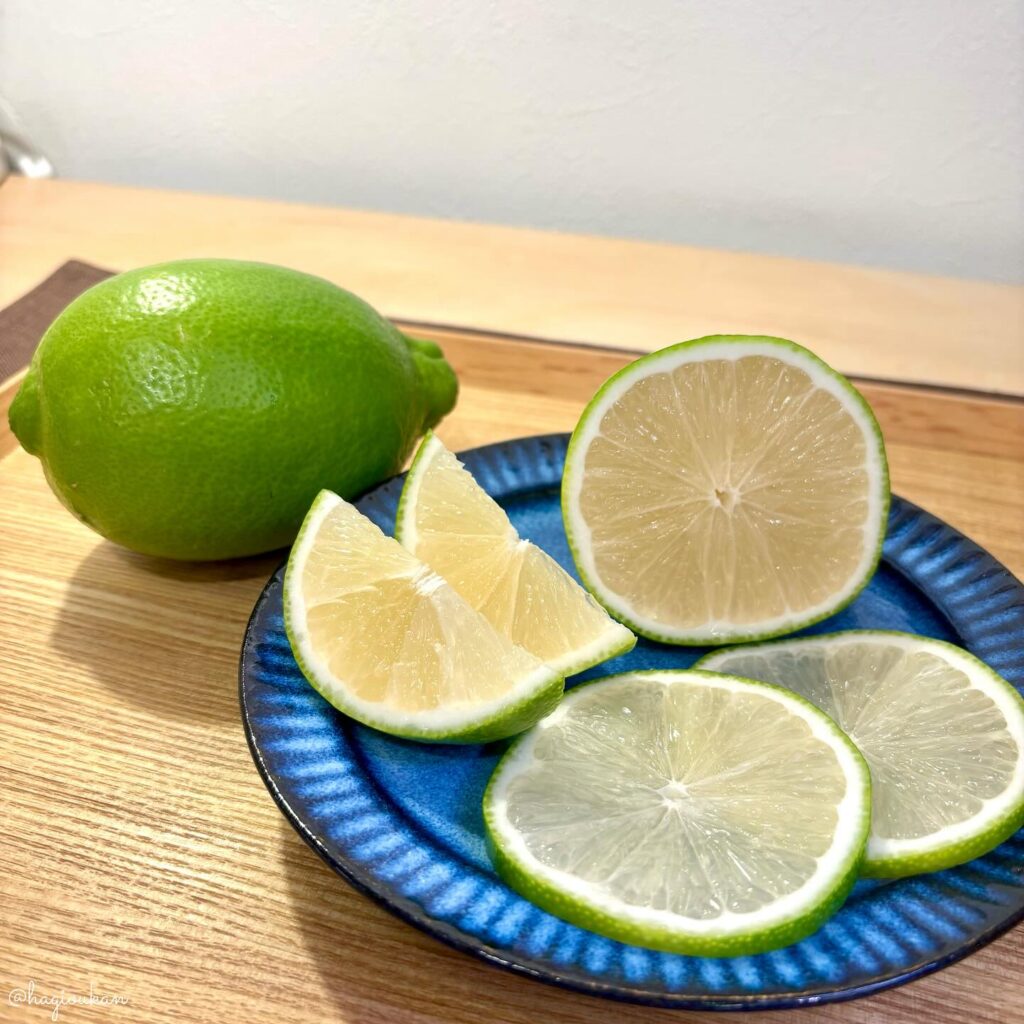 果皮が黄色くなると甘味が強くなり、そのまま食べることもできるそうですが、緑色のシークワーサーは果汁を絞って使ったり、果皮をすりおろして薬味として使います。