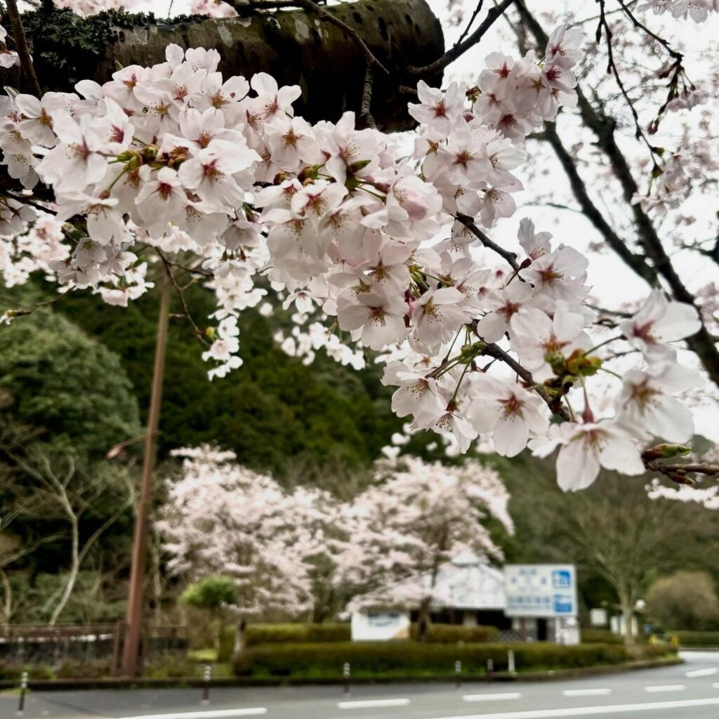 今日から新年度ですね。道の駅萩往還前の県道沿いの桜も、満開です。